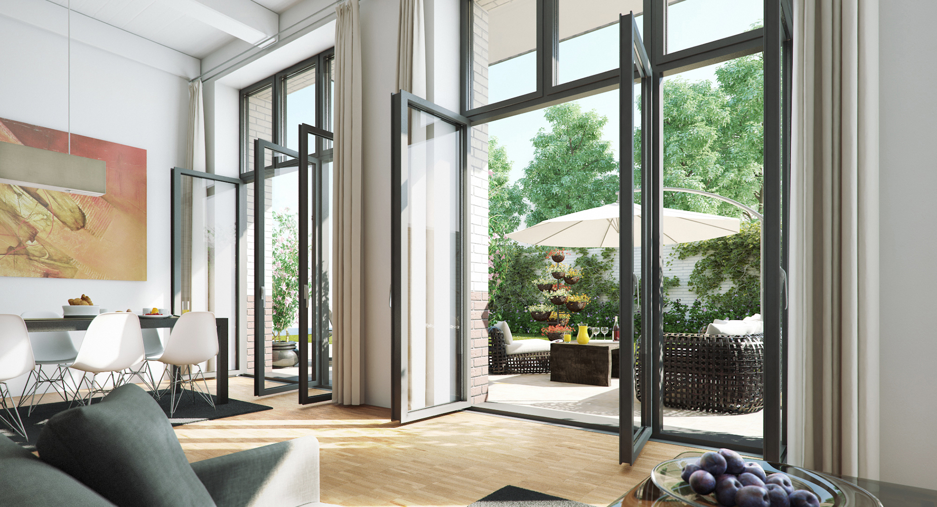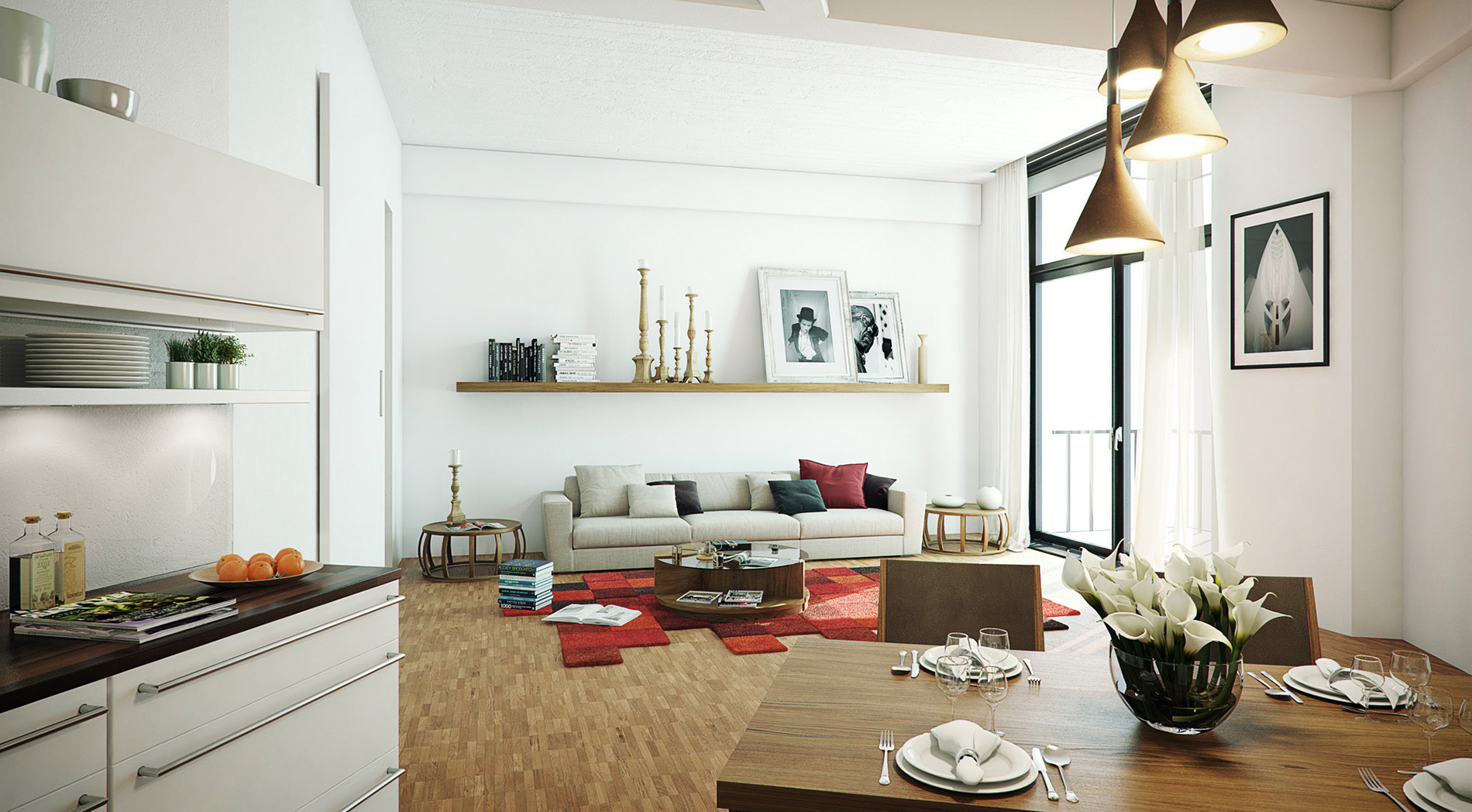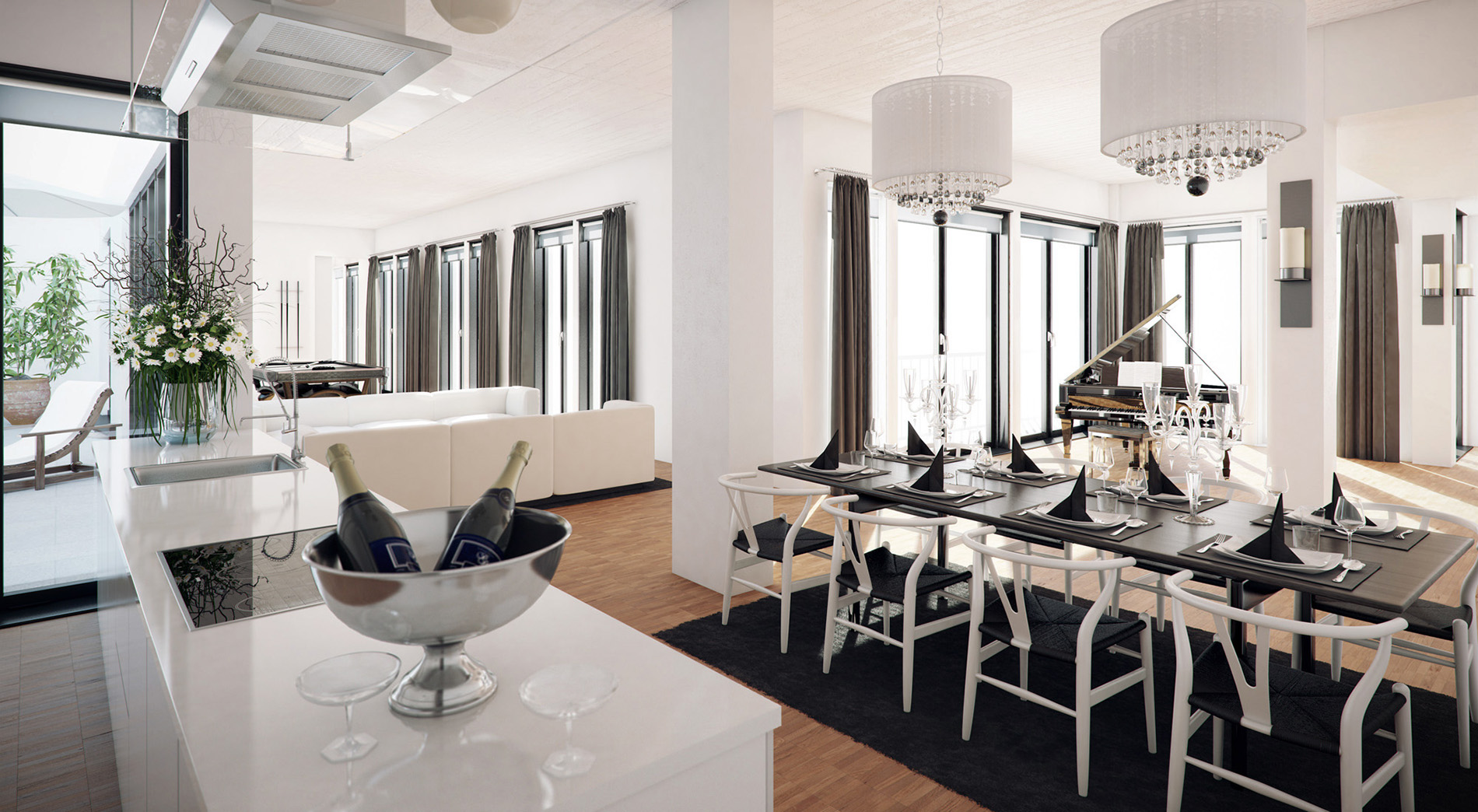 Hierbei handelt es sich um die Visualisierungen für die Neugestaltung eines 1887 erbauten Gebäudeensembles in der Blücherstraße in Kreuzberg. Das Loftgebäude wurde in der Vergangenheit für die unterschiedlichsten Gewerbe genutzt. Hier waren u.a. eine Fabrik zur Herstellung künstlicher Blumen untergebracht, später wurden hier auch Möbel produziert. Wir unterstützten das Fondbüro bei der Umgestaltung in Eigentum-Lofts in allen Belagen, das Repertoir reicht von der ‚Studentenbude‘ bis zu einem luxuriösen Penthouse mit Dachterrasse.